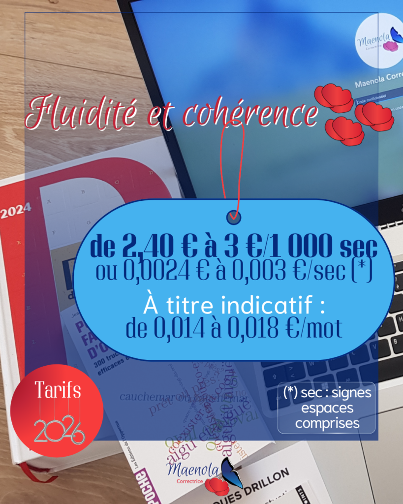 Prix que j’ai souhaités les plus justes possible. À la fois pour les auteurs et autrices qui font appel à mes services et pour moi.
